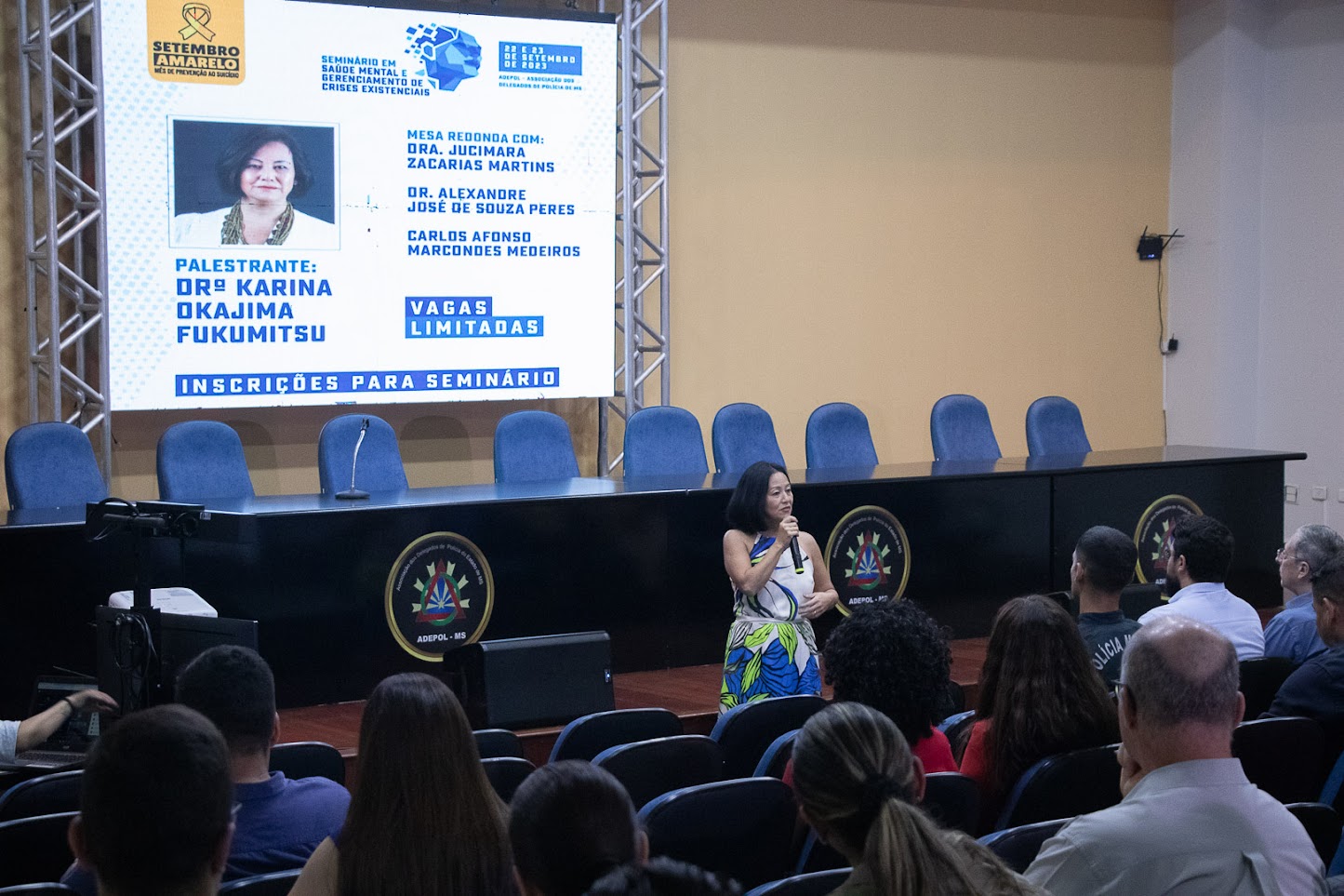 “Valorização da vida, valorização da existência, valorização do humano”. Essas foram as palavras iniciais que a renomada pós-doutora em psicologia pela USP, Karina Okajima Fukumitsu, utilizou a respeito da importância do seminário sobre ‘Saúde Mental e Gerenciamento de Crises Existenciais’ para os integrantes das forças de segurança.